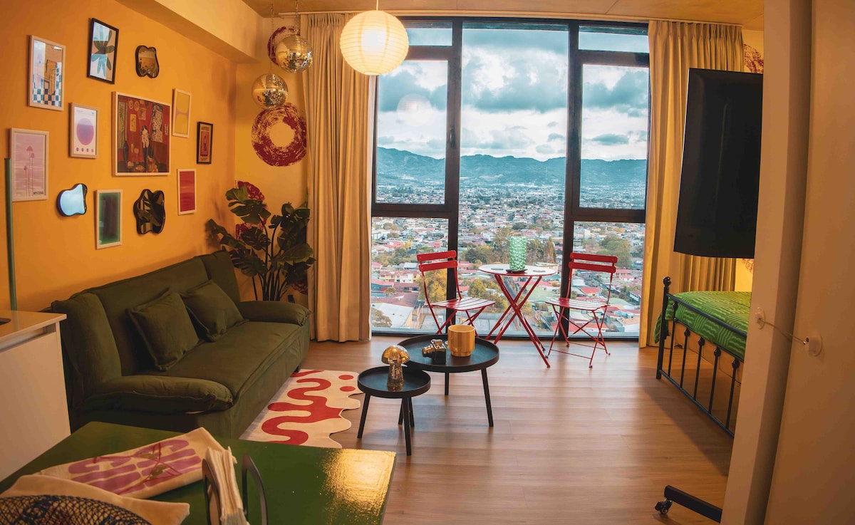 Just 9km from SJO airport. Romantic and elegant loft for couples with stunning panoramic views. The perfect place to unwind after a long flight or before heading back home. Relax in the hot tub while enjoying the breathtaking view, and take advantage of the TV, air conditioning, and automated black-out curtains for ultimate comfort. The airbnb is located in Pilas, San isidro de Alajuela