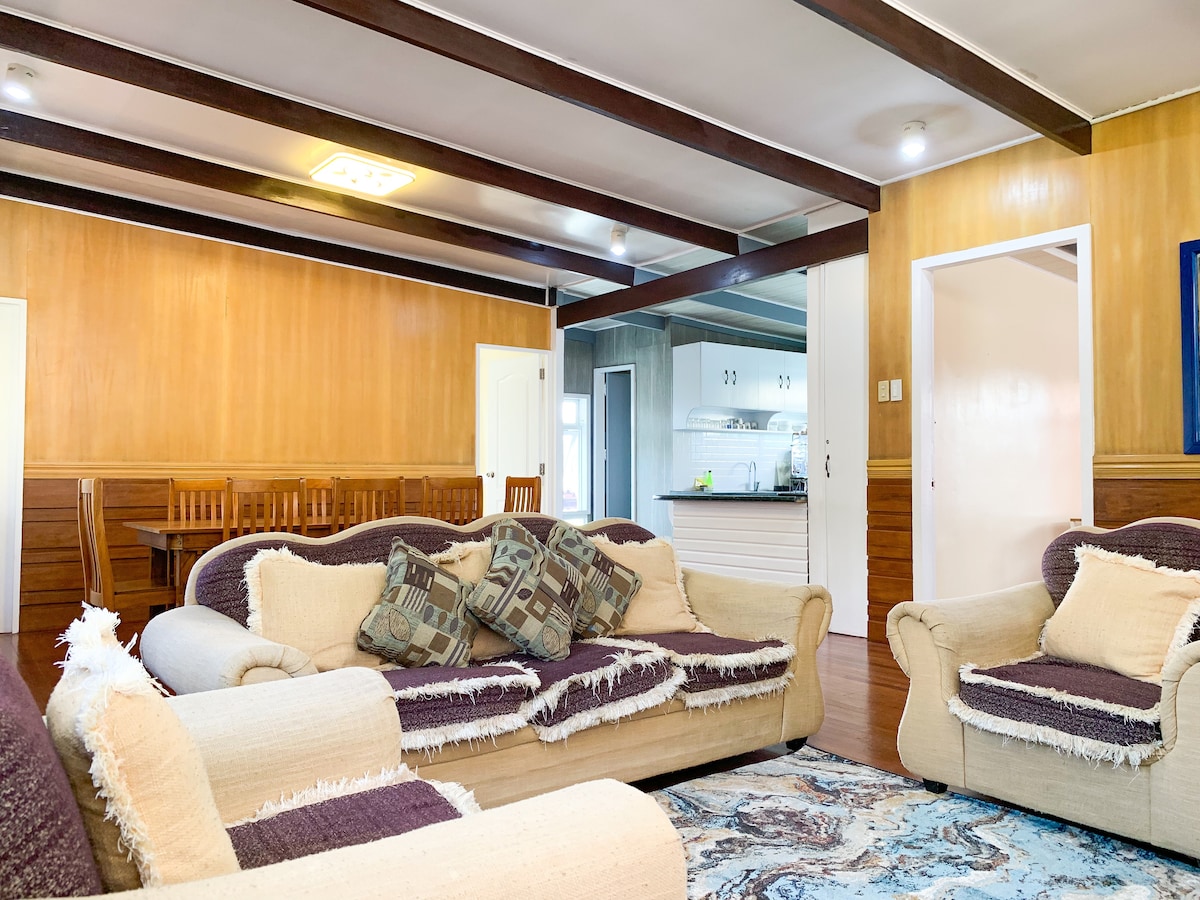 Escape the ordinary, experience a stay of pure comfort in your own home. Invite your family & friends to recharge in a great sanctuary of nostalgia & cozy vibes. There is a living room, Netflix, up to 400mbps fiber optic WiFi, smart TVs, fully equipped kitchen & separate dining room, 4 bdrm, 3 queen & 4 single size beds to provide you a rejuvenated sleep. There’s free gated parking, a courtyard, a front & back terrace and a galore of plants & fruit trees. Feel right at home at Lolo Jimmy’s❤️