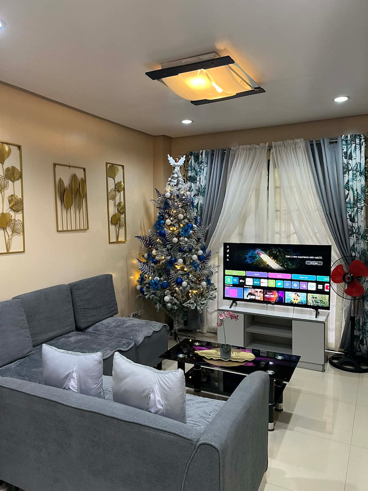 Maximum 10 pax. 2 rooms, 1 big loft Rm1-1 queen bed, sofa Rm2-2 single beds Loft-1 queen, 2 single beds, I pull out Sala with sofa bed and pull out 3T&B hot/cold shower Towels Full kitchen with free 5 gallon h20 during your stay Balcony area Globe Home WiFi/Smart TV CCTV security This is a lower level unit below main floor.Has steps up & down. Please update yourselves with the weather conditions thru the PAGASA DOST page. We’re a Homestay and do not use a generator.