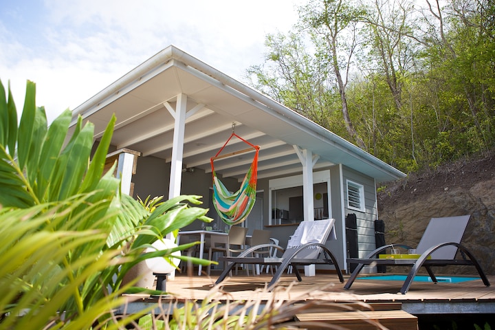 Prélassez-vous dans le spa en contemplant la mer. Situé à l’entrée du bourg touristique des Trois-Îlets, dans une résidence calme, paisible et ventilée, ce bungalow en bois de standing niché dans un jardin tropical est décoré dans un esprit intime et zen. Notre protocole sanitaire COVID19 garantit la sécurité de nos vacanciers. Il est disponible sur demande. L’emplacement des bungalows assure la distanciation sociale nécessaire à votre tranquillité. Accès autonome possible par boite à clés.