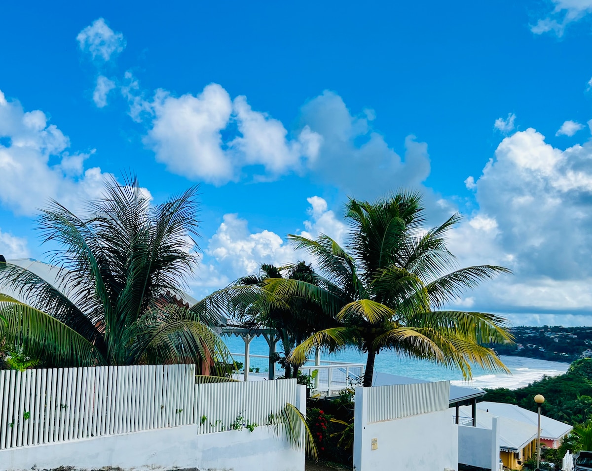 Magnifique studio, idéalement situé dans une villa récente avec environnement calme, verdoyant à proximité de toutes commodités : 200m de la plages, commerces, restaurants et non loin du petit marché bien achalandé de fruits et légumes locaux. Vous apprécierez de prendre vos repas sur la terrasse spacieuse face à la mer, en admirant le Rocher du Diamant, le Morne Larcher et l'île anglophone de Sainte Lucie.