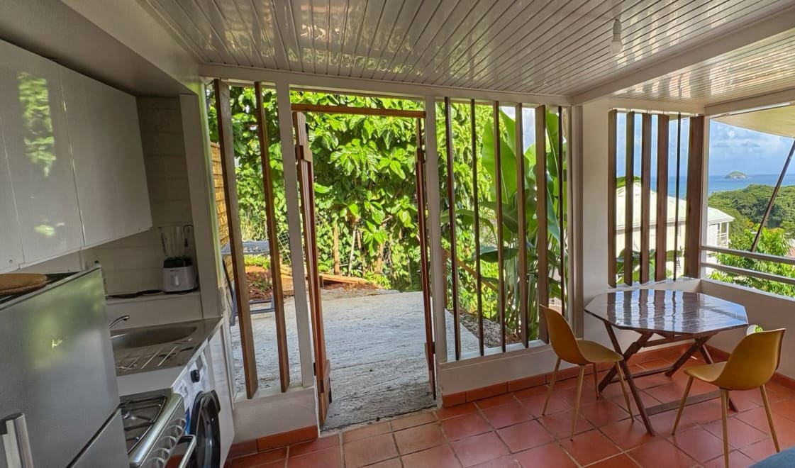 Bonjour Nous vous proposons notre petit bungalow tout mignon. Il est accolé à notre maison mais seule l'entrée principale est commune. Vous aurez votre espace privé et indépendant. Il est composé d'une chambre de 17 m² avec sa salle d'eau attenante ainsi que d'une terrasse de 15 m² avec cuisine extérieure. Vous pourrez profiter de la vue sur les pitons du Carbet en sirotant votre ti punch. Une petite plage peu connue et charmante est à moins de 10 min à pied.