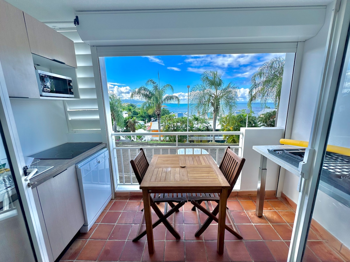 Ce studio, situé dans une résidence, peut accueillir 2 adultes, 1 enfant de moins de 16 ans et un bébé. Il est climatisé et offre une magnifique vue sur la baie de Tartane ainsi que sur les reliefs de l'île. Une piscine est présente au sein de la résidence. Par ailleurs, une plage est située à 5 min à pied. Le studio est accessible via un couloir au niveau de la chaussée, vous pourrez facilement transporter vos bagages. Des places de parking sont présentes à quelques mètres du logement.