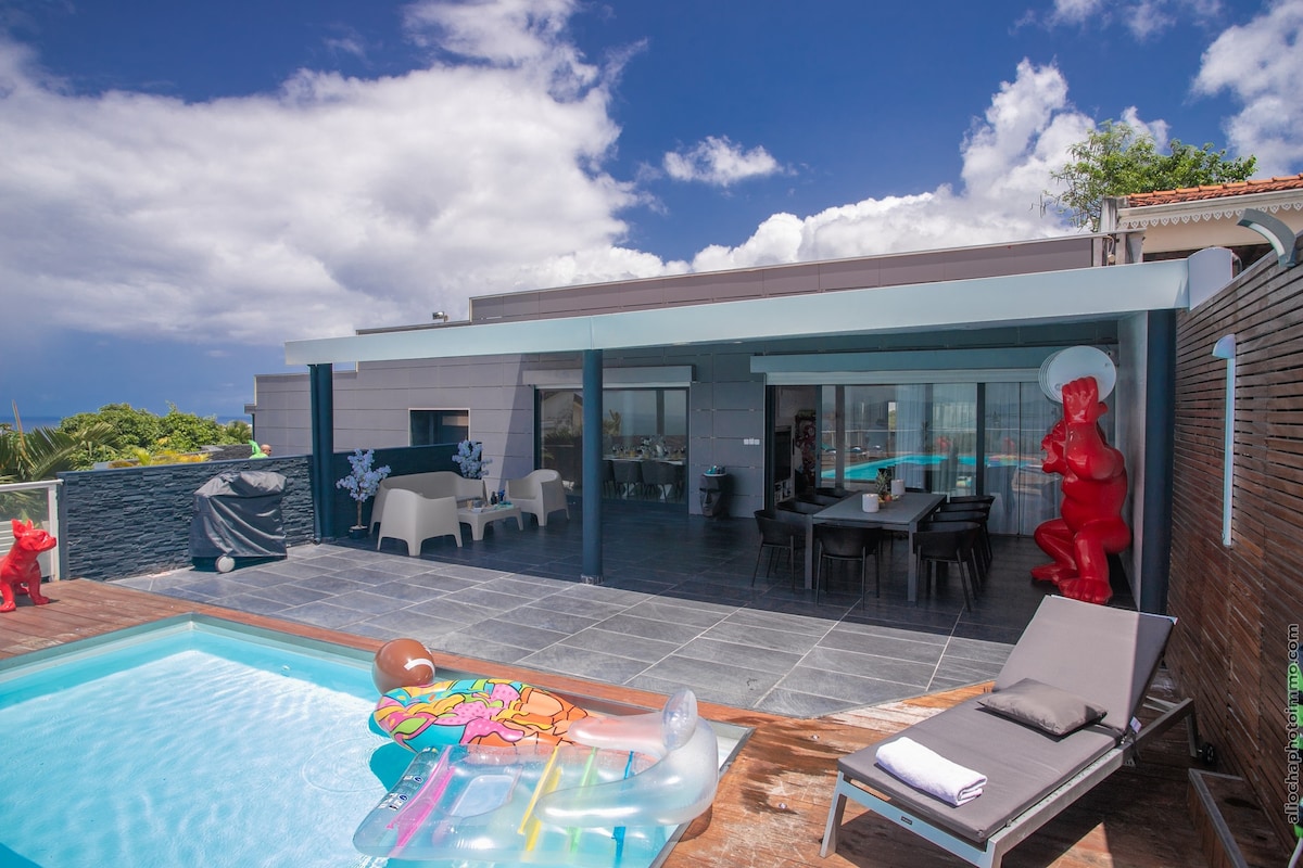 Évadez-vous dans le luxe tropical : La Villa King-Kong. Villa Moderne de 4 chambres, vue sur mer avec Piscine à Case-Pilote Bienvenue dans notre oasis de raffinement au cœur de la magnifique Martinique. Notre villa moderne, dotée de 4 chambres et 3 salles de bains, offre une expérience de vacances exclusive avec une fusion parfaite de confort, élégance et vues panoramiques. 🌴