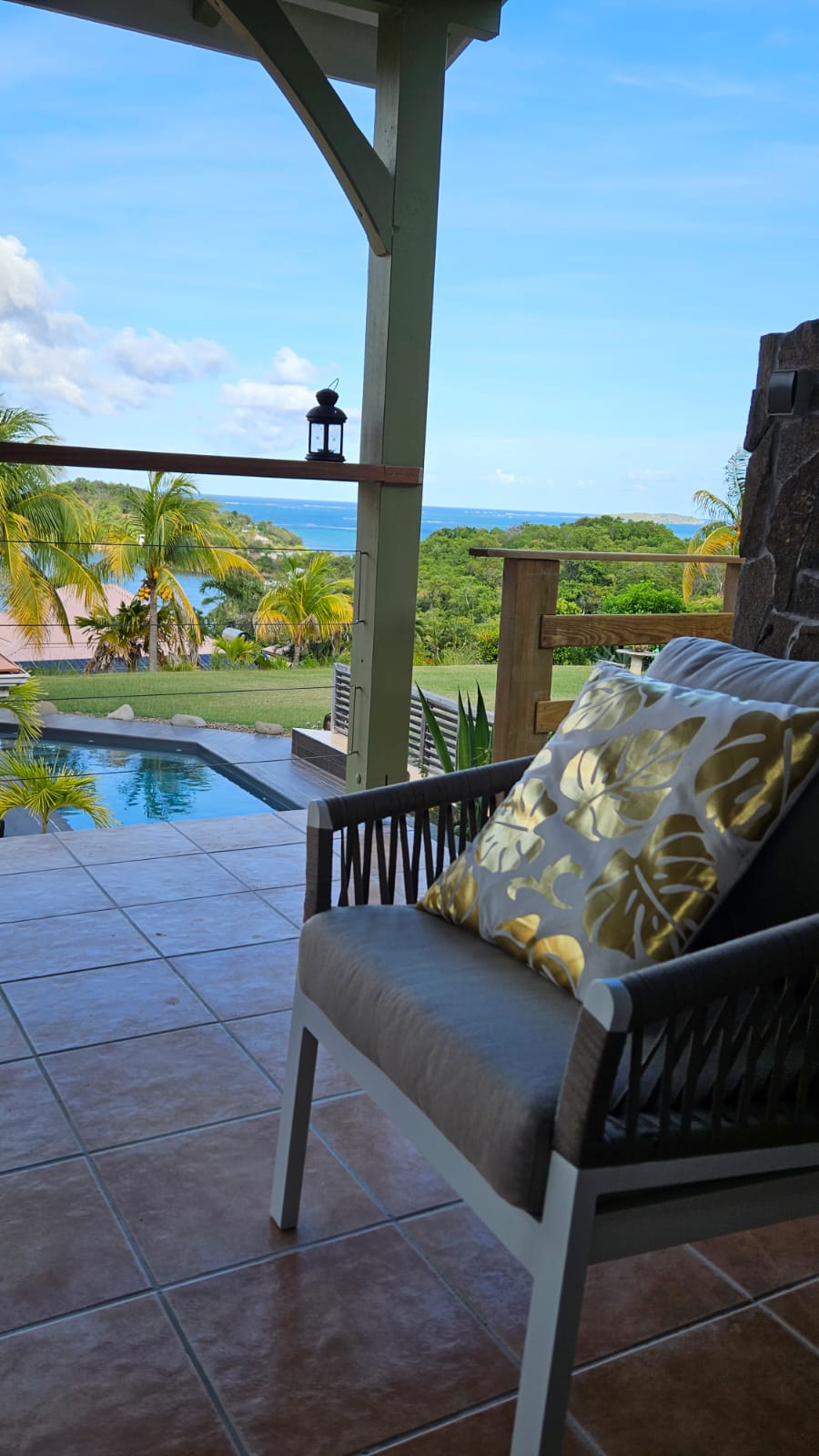La villa Syleonne est accessible de plein pied par un portail électrique également pour garer sa voiture. située sur les hauteurs entre Sainte-Marie et La Trinité. Elle dispose d'une vue sur l'océan Atlantique, la presqu'île de la Caravelle à l'est . à l'ouest sur les pitons du carbet et la montagne Pelée (classés au patrimoine de l'unesco).au nord de La Dominique Ce logement paisible et sécurisé offre un séjour détente pour toute la famille.
