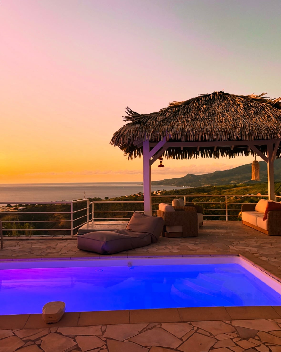 Ce logement affiche un style résolument unique. Appartement de haut standing, avec vue imprenable sur la mer et petite piscine vitrée privative (prof 1,30 m, largeur 2,50x2,50) 2 chambres climatisées, cuisine entièrement équipée et fauteuil massant ! Venez vous ressourcer dans un écrin de beauté et de confort. Arrivée autonome. Fumeur autorisé en extérieur. Distance aéroport: 25 mn Commerce le plus proche: 15 mn Plage de pêcheur à 5 mn à pied (sable noir) Activités nautiques à 5 mn à pied