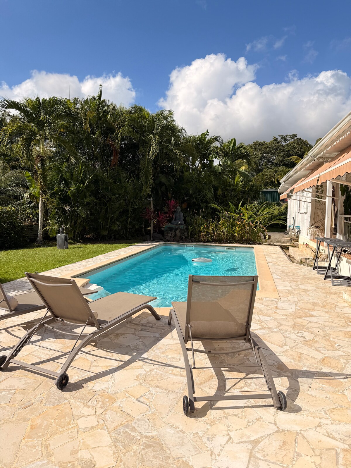 Agréable appartement en bas de villa : • Idéalement situé, à seulement 10 min de l’aéroport et des centres commerciaux. Sa position centrale est parfaite pour découvrir les plages du sud comme la nature luxuriante du nord. • Propre, spacieux et fonctionnel, avec une entrée indépendante pour plus d’intimité. • Grande terrasse avec jardin verdoyant, idéale pour se détendre et profiter du cadre tropical. Un point de départ parfait pour explorer toute la Martinique.