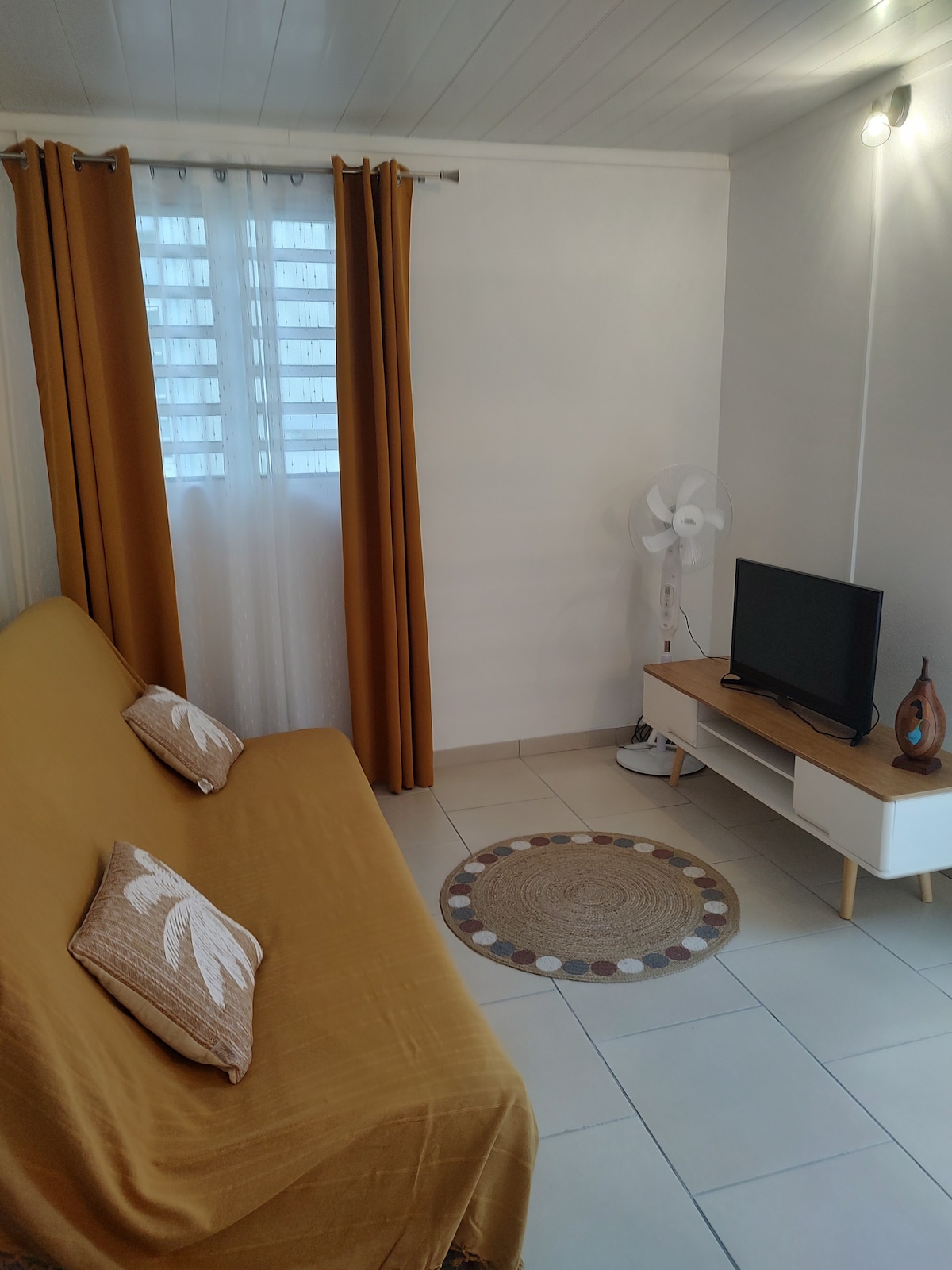 Location à la semaine d'un grand studio, climatisé, situé dans une villa privée et sécurisée. Logement coquet avec véranda, cuisine américaine et salle d'eau. Idéal pour un couple, avec possibilité de couchage pour un enfant. Proche commerces, Pharmacie, plages. Pass vaccinal complet exigé pour le séjour, en raison de l'acuité de la crise sanitaire dans le Département