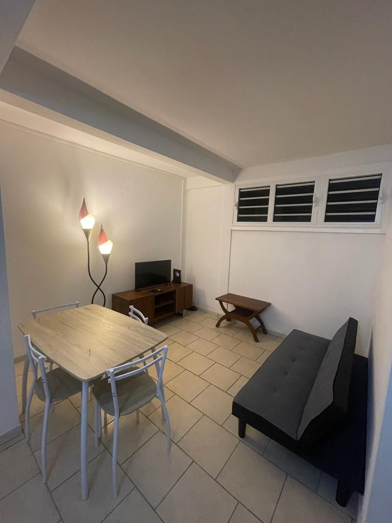 Découvrez notre petit coin de paradis sur la presqu'île du ROBERT. Point de départ activités nautiques (bateau, kayak, snorkeling..) Proches des fonds blancs, Ilet Madame, Bassin de Joséphine et de l'Ilet aux iguanes. Vous louerez un studio qui fait partie d'un ensemble de 2 studios studio pour 2 ou 3 personnes Piscine partagée pour les 2 studios Le 1er petit déjeuner est prévu. Une sortie kayak offerte pendant votre séjour. Attention : pas d'invités, pas de fêtes