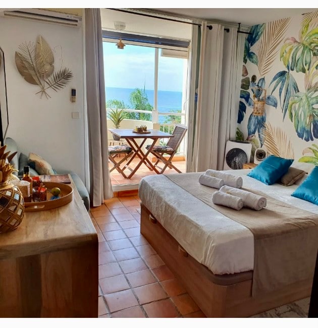 Véritable appartement meublé, cuisine toute équipée, spacieux, vue mer dégagée depuis le Hamac, wifi ... Vous ne vous serez jamais senti autant chez vous, loin de chez vous ! L’environnement calme et agréable vous permettra de vous relaxer, cuisiner, travailler et profiter de la Martinique ! Il vous convient ? Venez poser vos valises dans votre pied-à-terre, pour quelques jours ou plusieurs semaines.