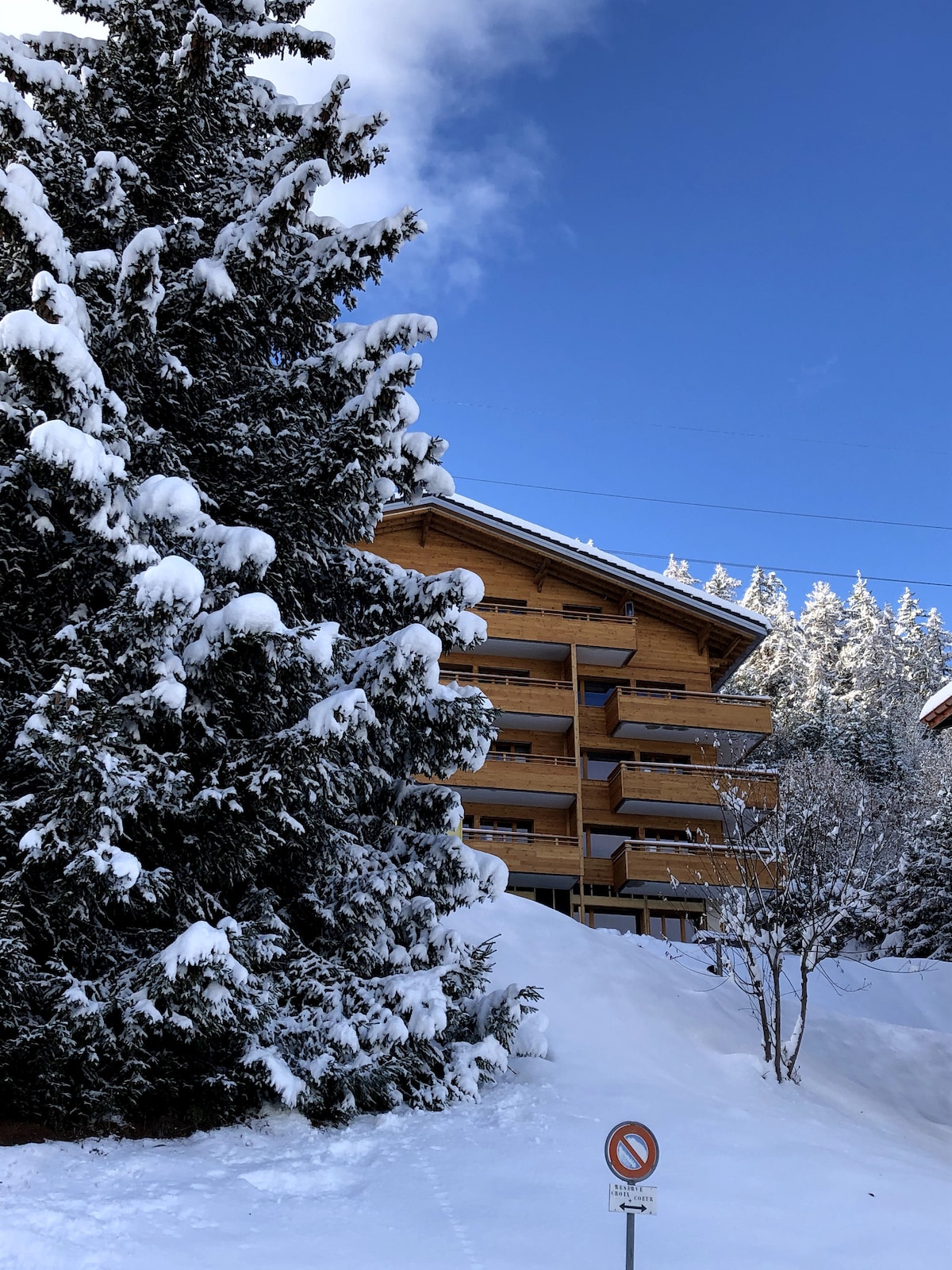 A very cosy and spacious bedroom. Self catered. Separate entrance. Very quiet location, attached to a typical Swiss chalet. The Lodge is in front line facing the mountains, sight entirely released with breathtaking views over the Swiss Alps and its sunsets. A little away from the turbulent and noisy ski resort but still reachable in one minute by car or 500m walk to the free ski bus Easy access by car Free indoor parking We are all ski teachers and can provide ski lessons at attractive rates