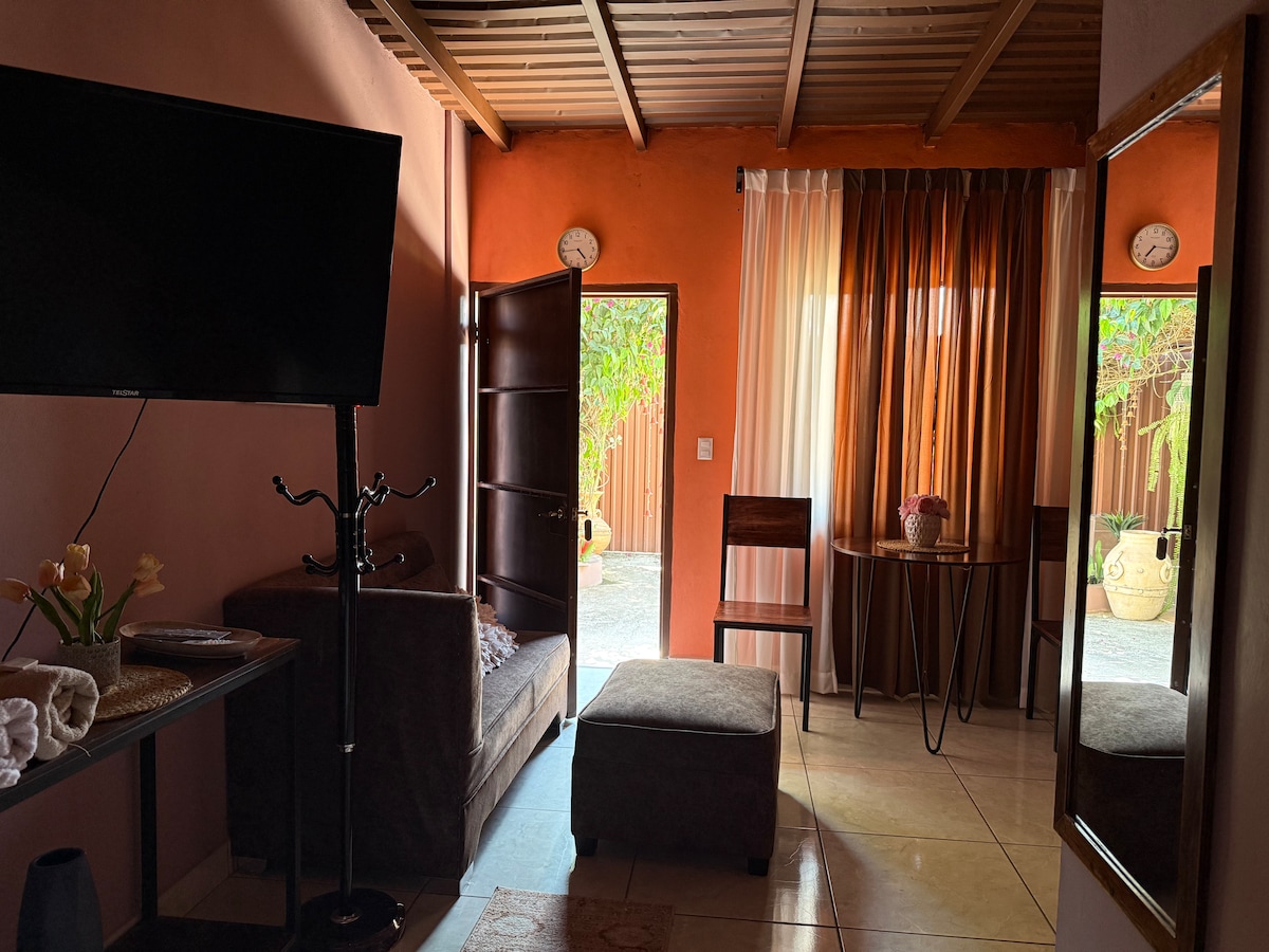 Habitaciones privadas y equipadas con lo básico, en un ambiente completamente natural, rodeado de montañas, con un clima cálido y mucho viento, por las noches la temperatura baja y el clima se torna delicioso y agradable, hay mucha vegetación y silencio.