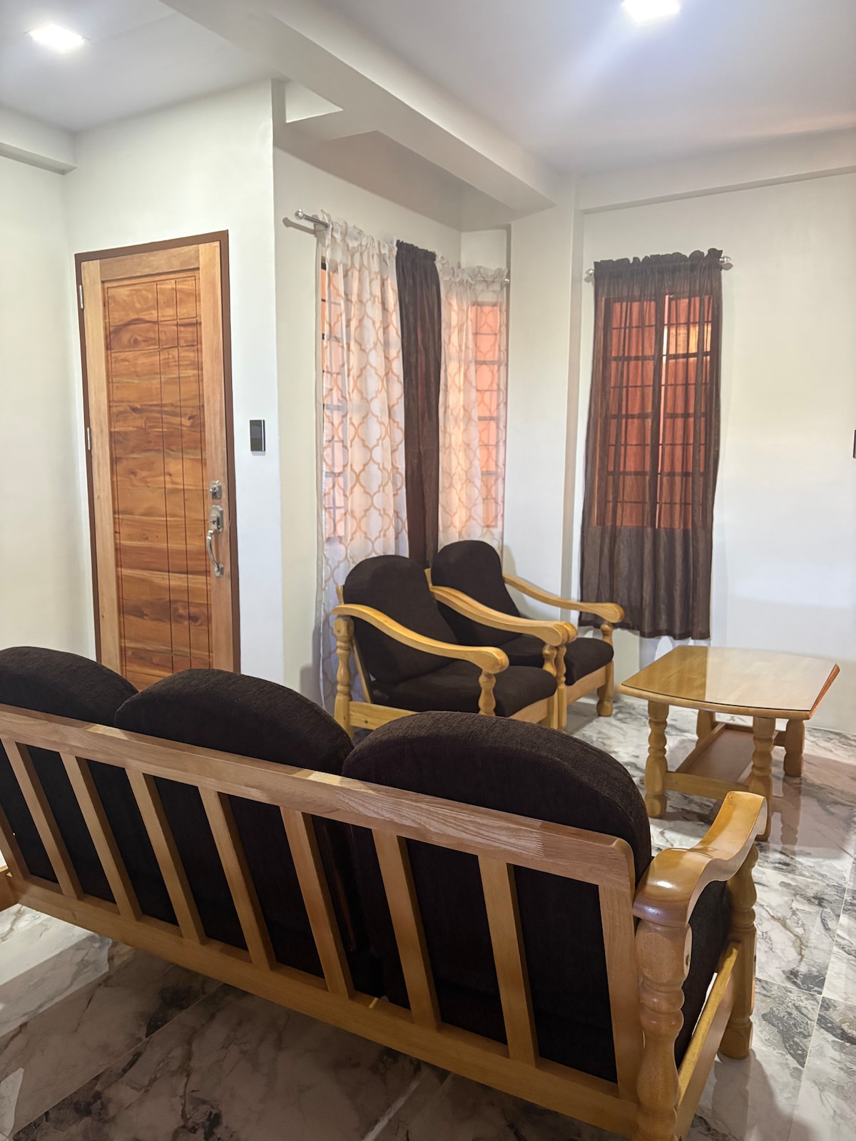 Enjoy exclusive use of the entire place (124 sqm). Free parking slots included. Designed for couples and families, this stylish and spacious fully air-conditioned penthouse offers beautiful views of the ocean, hills, and countryside. 🌴 Just 5 to 10 mins drive from public beach, restaurants, hospital, pharmacy, 7-Eleven, malls, meat shop, fish market, grocery, and public market. 🏠 Modern & Stylish – Instaqrammable sleek interiors. 🍳 Full Kitchen – Complete cookware for your cozy stay.