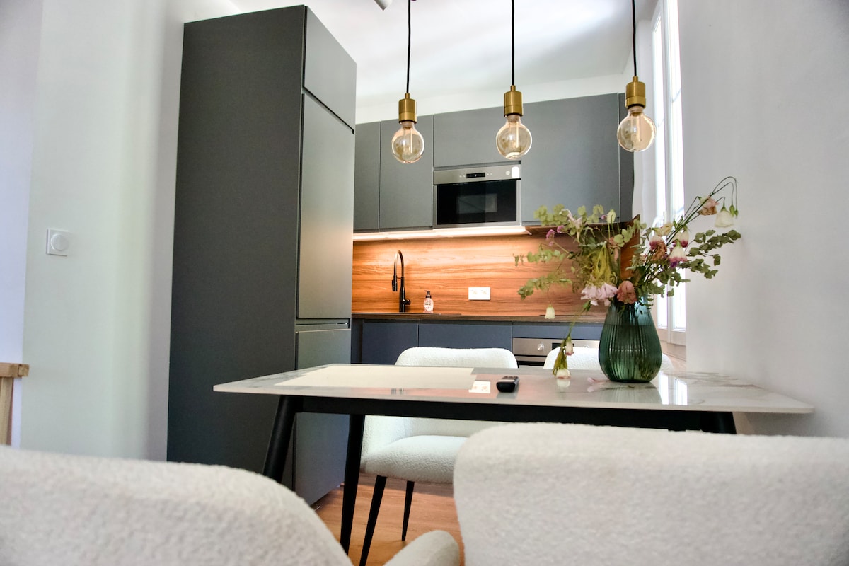 Appartement T2 de 50m2, au deuxième étage d'un immeuble ancien au cœur du centre-ville, en zone piétonne, à Toulon. Quartier vivant et convivial, bars à vin, restaurants, commerces et magasins, galeries, au pied de l’immeuble! Il se compose d'une belle pièce de vie, salon avec 2 canapés (dont un canapé lit) et salle à manger, d'une cuisine équipée et d'une grande chambre (lit 160cm) avec salle de bain (baignoire) et toilettes. Vous serez à 10 mn à pied de la gare, 2 mn des bus et bateaux