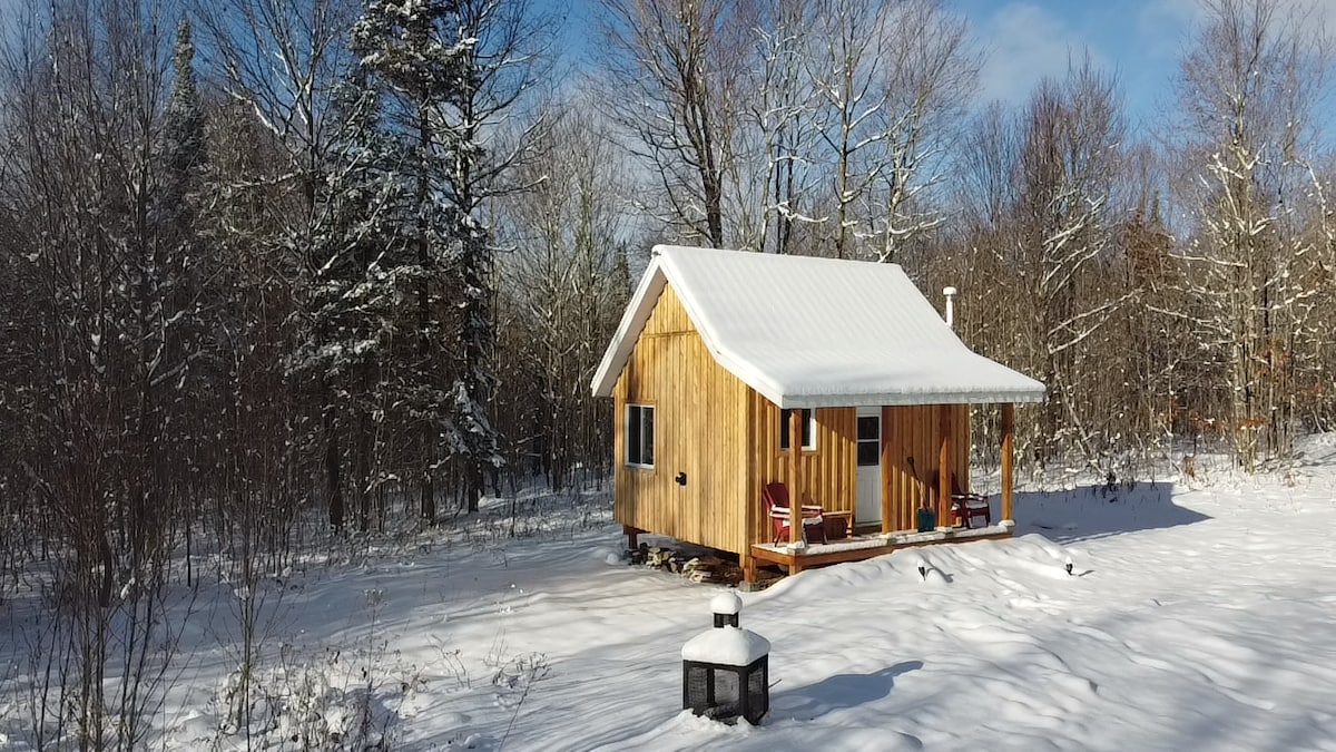 Welcome to La Khabine! This cozy, modern cabin comes with all you need to relax and connect with nature. Enjoy a glass of wine with the sound of a crackling fire in the wood burning fireplace. Take in the view of the forest through the surrounding floor to ceiling windows. Relax in the private outdoor cedar barrel sauna. Natural self-care products, firewood, laundry soap, and high-speed Wi-Fi are all complimentary. We hope you'll love our little cabin of windows as much as we do :)