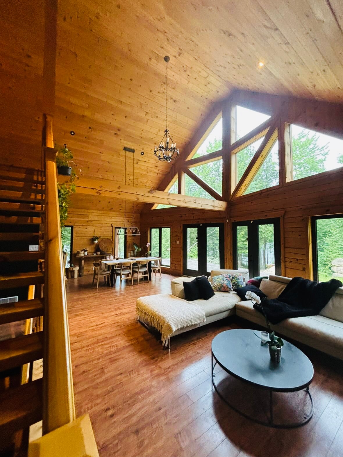 Perfect nature retreat in the heart of the Laurentian. Discover this unique Canadian log home built by local prestige company Harkins. Peaceful clear water lake directly in front of this hidden gem. ♦ Indoor wood fireplace next to comfy living room & smart TV ♦ Two Spacious Bedrooms with King & Queen bed ♦ Private Natural Lake Access ♦ Balcony with BBQ. Fire Pit ♦ Pure intimacy, no neighbours close ♦ Work desk and Wi-Fi