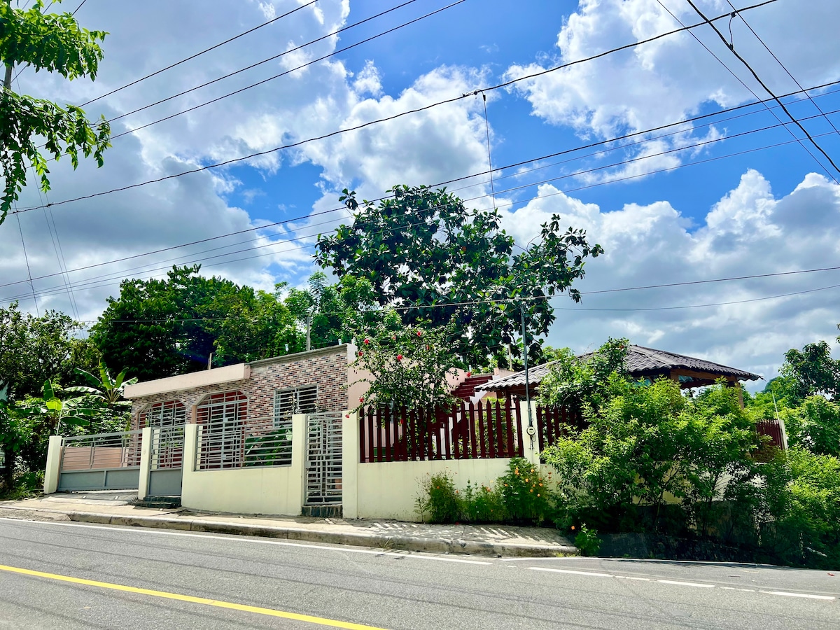 Desconecta de tus preocupaciones en este espacio tan amplio y sereno.casa con capacidad para 6 personas. Sala amplia muebles cómodo, comedor 6 puesto, 2 baños , 3 habitaciones cama qeen , aire acondicionado 2 en dos habitaciones abanico en las otras habitacion cocina equipada, nevera, microondas, estufa, etc. Muebles al aire libre , parqueo para 2 vehículos, también cerca del alojamiento puede disfrutar de los mejores ríos de Bonao. Y restaurantes.