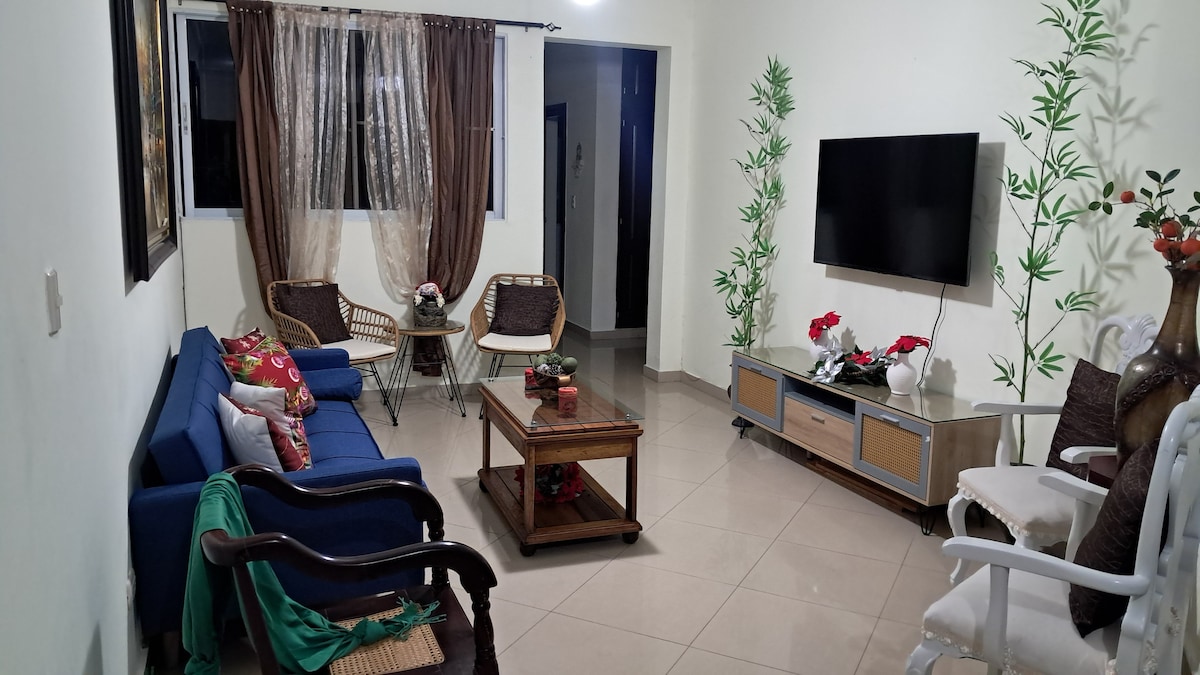 Es un apartamento Acogedor, ubicado en La Vega (Sector el Paraíso), República Dominicana, con una excelente ubicación geográfica descrita a continuación, a 20 minutos del Aeropuerto Internacional del Cibao, 05 minutos del Centro de la Ciudad (Parques, Tiendas, Bancos, Supermercados), 04 minutos de las principales Clínicas (La Concepción, Centro Medico Fantino, Policlínico La Vega), 05 minutos del Hospital Regional, 02 Minutos Policía Turística, 02 Minutos Farmacia Ismelda, entre otros.