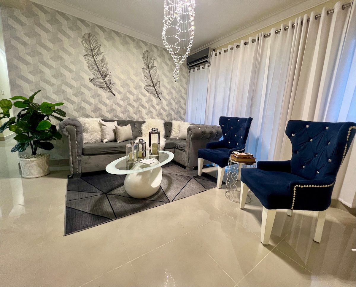 Deslumbrante y totalmente amoblado apartamento, rediseñado al estilo contemporáneo, con una ubicación muy céntrica en una de las zonas más exclusivas de la Vega. Ubicado a solo 3 minutos del centro de la ciudad con los bares y restaurantes más trending, 7 minutos de las bellas montañas y ríos de Guaigüi, a 20 minutos desde el Aeropuerto Internacional del Cibao STI y 30 de las bellas atracciones de Jarabacoa El residencial es monitoreado las 24 horas con cámaras de seguridad y personal físico.