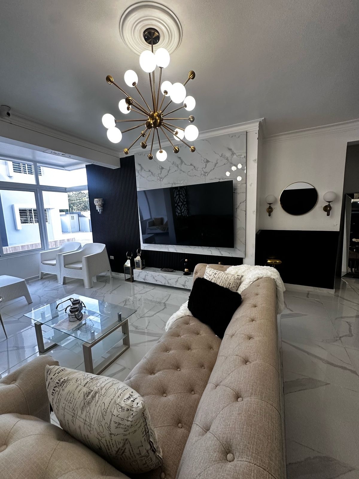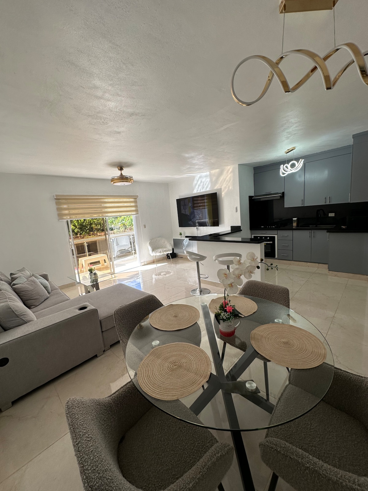 Tu refugio de lujo en el corazón de la ciudad Disfruta de una estadía inolvidable en este exclusivo apartamento de 3 habitaciones y 2.5 baños, ubicado en un residencial seguro y tranquilo, ideal para vacacionar. Este apartamento ha sido amueblado con elementos de primera calidad para garantizar tu máximo confort y bienestar. Ubicación privilegiada! Supermercado La Sirena a tu alcance: Abastece tu despensa con facilidad. Bancos: BHD, ALAVER, POPULAR, WÉSTERN UNIÓN, todo cerca de ti!