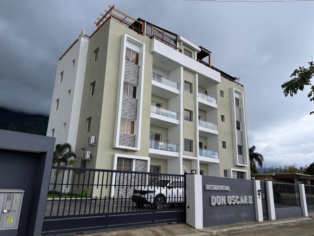 ✔️SuperAnfitrión Verificado! Tu estadía estará en las mejores manos 🏢Apartamento en Jarabacoa, República Dominicana, 🇩🇴 Excelente ubicación cerca de restaurantes, centros comerciales y lugares turísticos. ✅ Perfecto para turistas, ejecutivos y parejas. Dotado con todo lo necesario, sábanas, toallas, productos de limpieza 🛏 🛜 WIFI 🍳Cocina ❄️Aire acondicionado 📺Tv 🚘 Parking 💦Lavadora