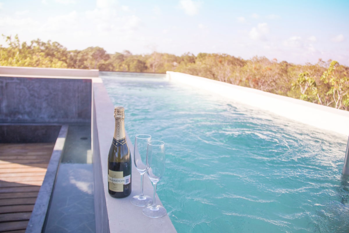 丛林氛围 • Aldea Zama • 顶楼泳池和健身房