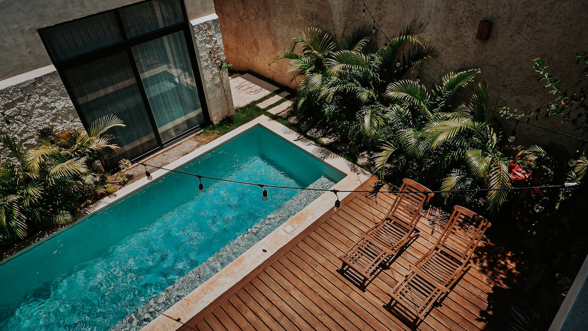 图卢姆中央公园可爱泳池景小套间
