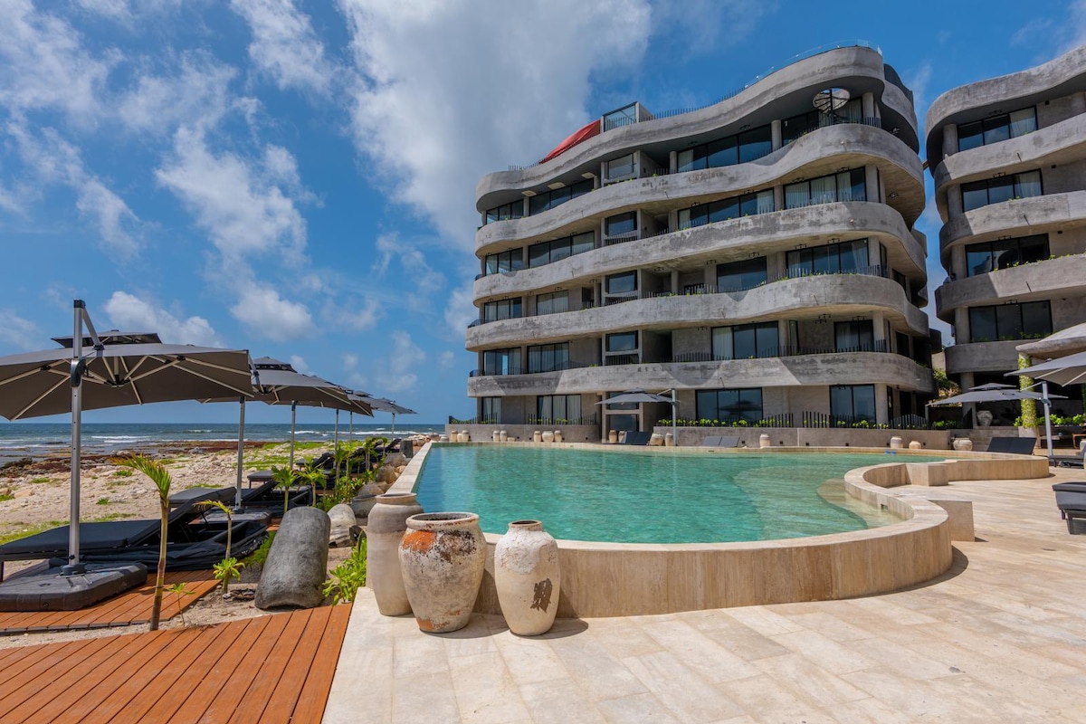 Wake up to panoramic ocean and bay views from this luxury 3BR duplex at MAIIM, one of the most unique contemporary residential buildings in the Riviera Maya, by The Partner Group. Positioned at the corner of Tankah Bay, the residence features a private outdoor terrace with hot tub & overlooks the curve of Bahía Soliman, offering calm waters and open horizons. Just 5 minutes by car from Casa Cenote, a mangrove cenote renowned for its iconic crocodile resident, “Panchito,” and 20 from Tulum Town.