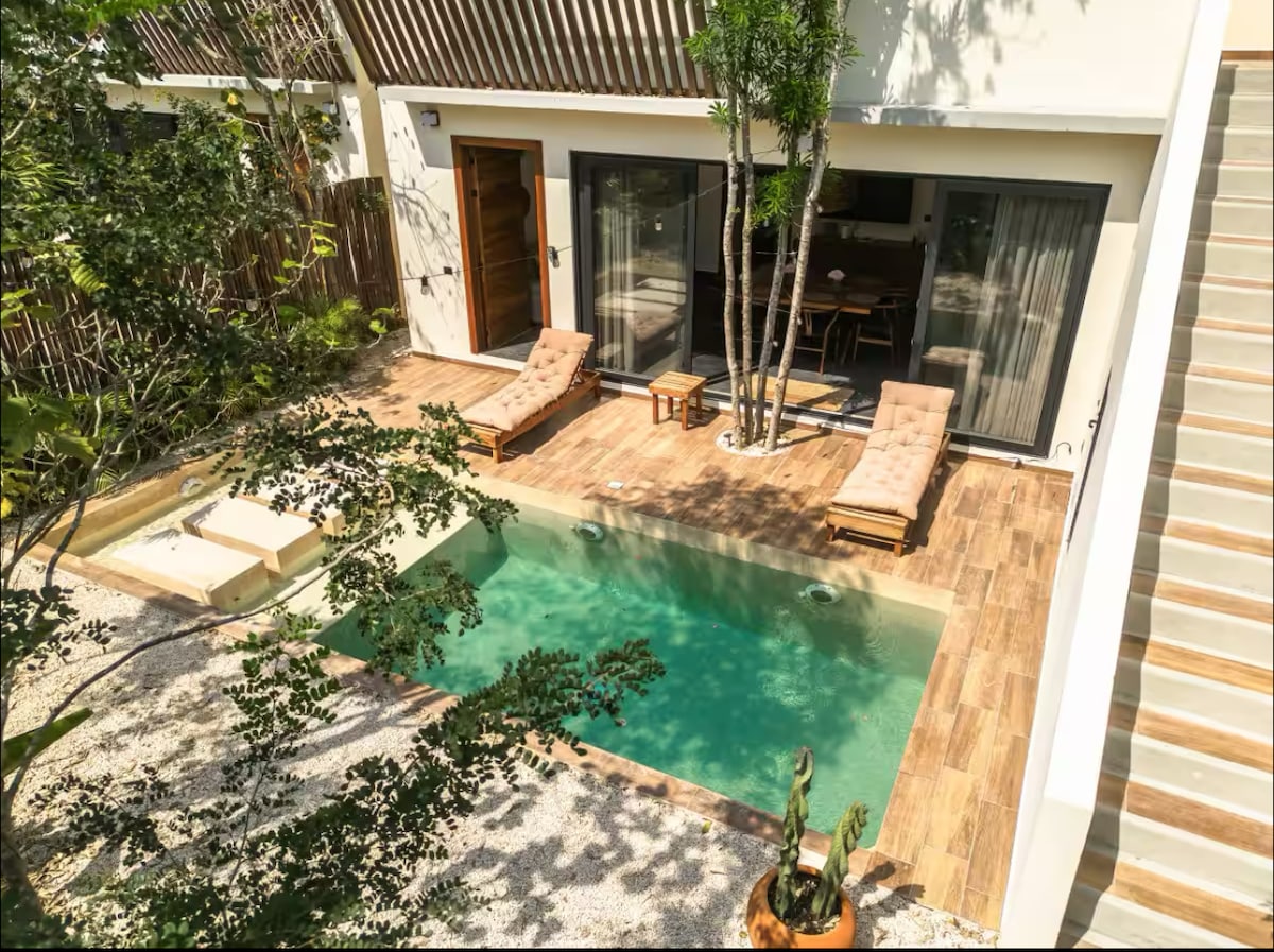 Discover a hidden gem nestled in Tulum’s lush jungle. This bespoke villa features a private pool and a outdoor sanctuary, perfect for immersing yourself in the tropical beauty of the Mayan Riviera. Located in the vibrant La Veleta neighborhood, you’re steps away from top-tier restaurants, chic boutiques, and local attractions. Whether you’re seeking a serene retreat or a base for adventure, this villa offers the ultimate blend of seclusion and convenience.