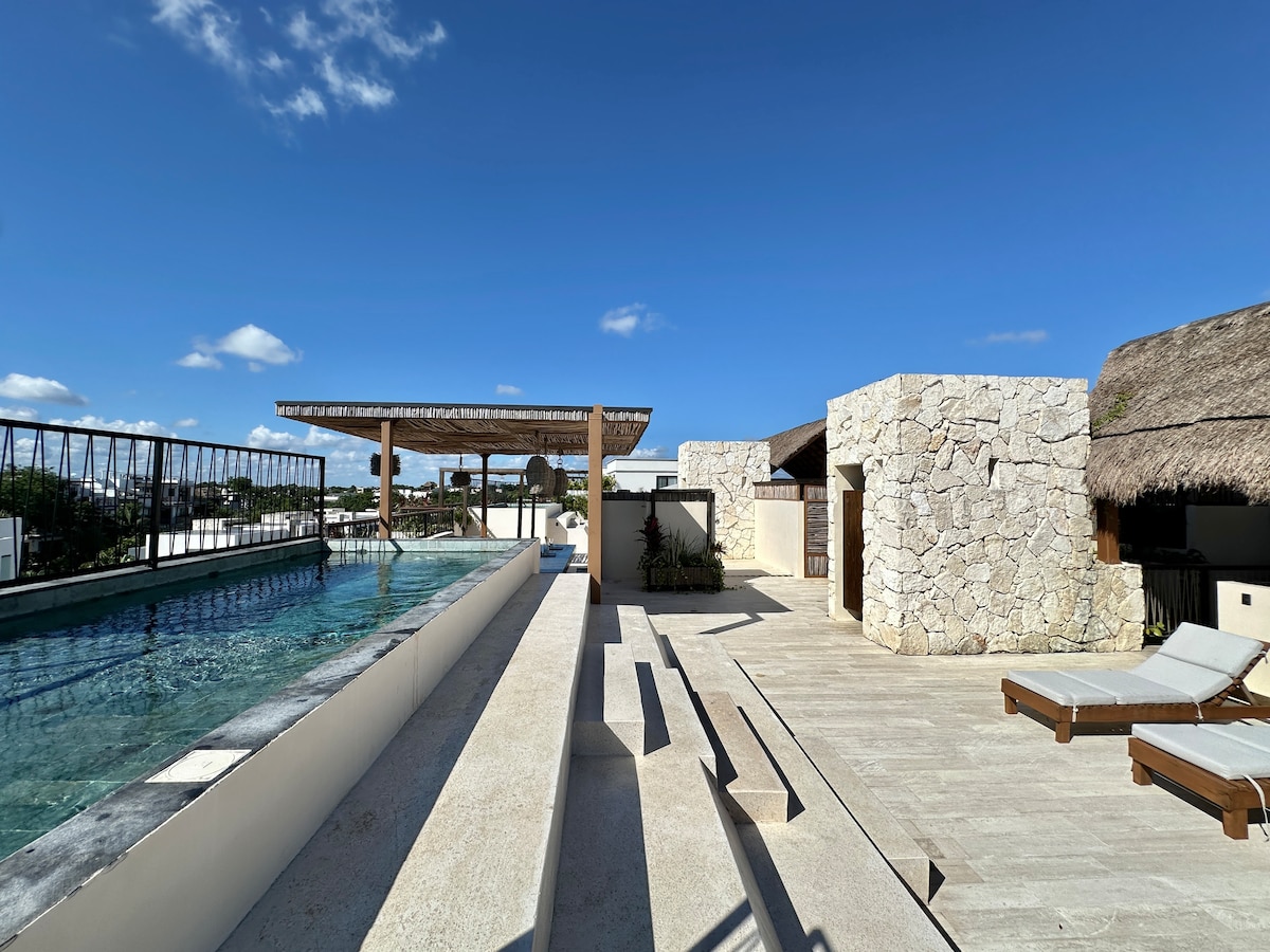 Welcome to our 𝗱𝗿𝗲𝗮𝗺𝘆 𝗽𝗲𝗻𝘁𝗵𝗼𝘂𝘀𝗲 in Tulum, where you can escape the hustle and bustle of everyday life and just relax. Our stunning rooftop is surrounded by exotic plants and greens, creating a serene and peaceful environment for you to unwind. With a private pool, outdoor shower, and shaded lounge, you'll have everything you need to soak up the sun and enjoy the beautiful sunsets. And with fiber optical WIFI and a SmartTV, you can stay connected and entertained during your stay.