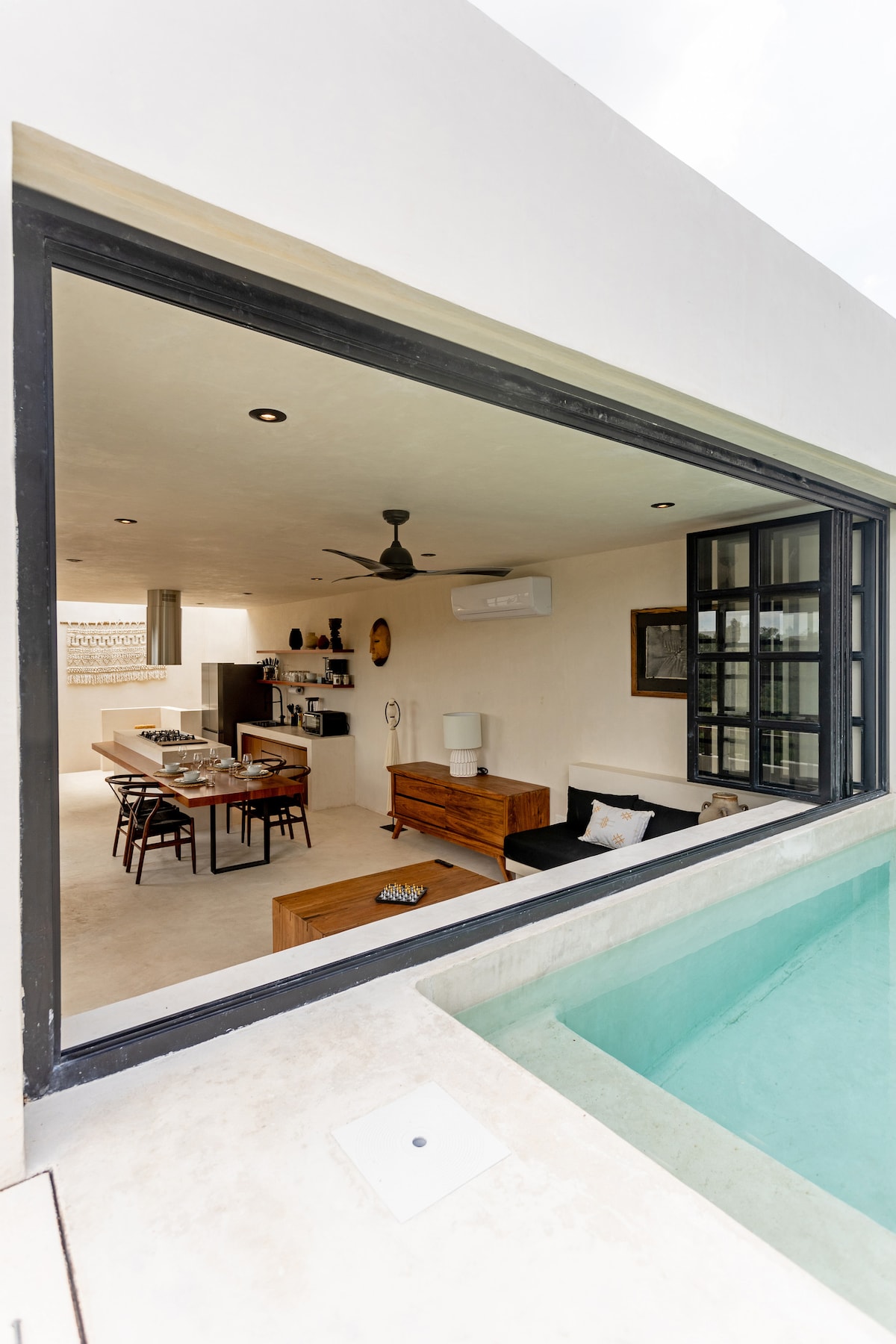 En Casa Kuro, la arquitectura japonesa dialoga con la selva maya en un refugio de contemplación. Creación de Namus, desarrollador publicado en las más importantes revistas de arquitectura global como Architectural Digest, ArchDaily, Design Boom y en el libro "Lo Mejor de la Arquitectura Mexicana del Siglo XI", además de múltiples premios internacionales. Este depa en primer nivel es un templo para los amantes del arte: 2 recámaras, alberca privada, tina y vistas a la jungla.