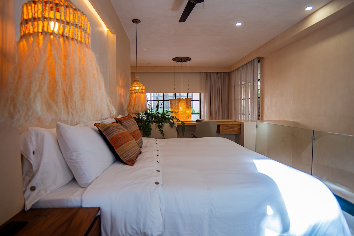 // FREE MOPED/ATV now included with your booking* // High ceilings; boundless oportunities. Nestled in the heart of La Veleta where Tulum's vibrant city lifestyle meets the gates to the beach, our new Penthouse has no limits to a lifetime's adventures. Our home features a private 200 sqft balcony with a pool, lounge area, full kitchen with Smeg appliances and a upper-level room with priviliged views to Tulum's sunsets. Keep on reading for the full perks!