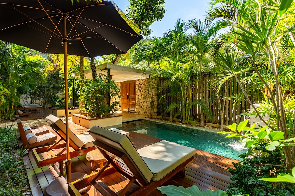 浪漫温水泳池别墅|时尚图卢姆度假胜地