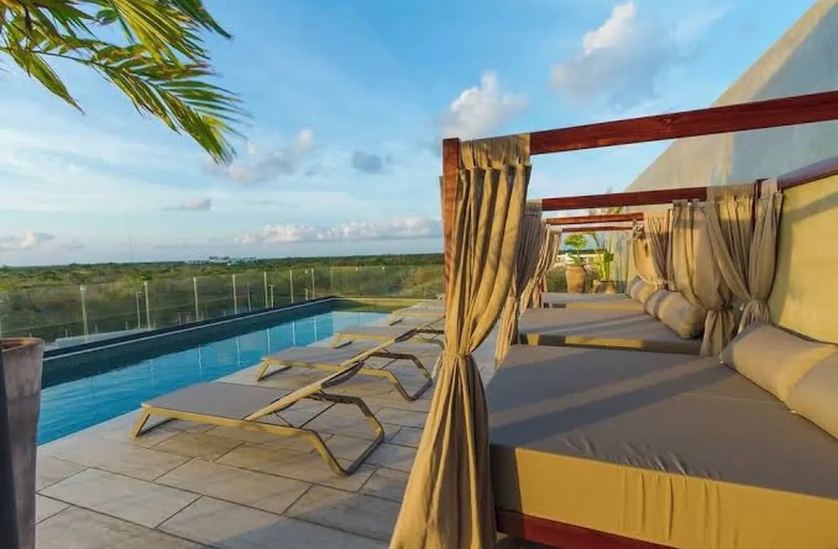 A solo 10 minutos de las hermosas playas del Caribe! ¡Nuestro Penthouse es espacioso y luminoso, con jacuzzi privado en la terraza, tiene 2 habitaciones cada una con cama tamaño king y su baño completo privado, una cocina totalmente equipada, tiene un gran balcón privado desde donde puedes disfrutar de las hermosas vistas del patio! ¡Acceso gratuito al gimnasio y a la sauna a disposición de nuestros huéspedes, spa y masajes bajo petición y una azotea donde los huéspedes pueden practicar yoga!