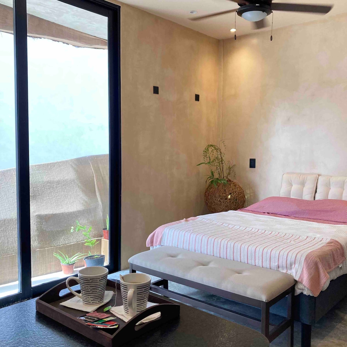 Your vacation home away from home; ideal for couples, digital nomads or solo travelers. With fast internet, bedroom with king bed, A/C unit, kitchenette & balcony plunge pool. You will have access to incredible common areas such roof top pool, Jacuzzis, and much more. One of the most convenient locations you will be within walking distance to some of the best restaurants, shops and supermarket; and closeto the beach.. You will have everything you need to live the Tulum experience.