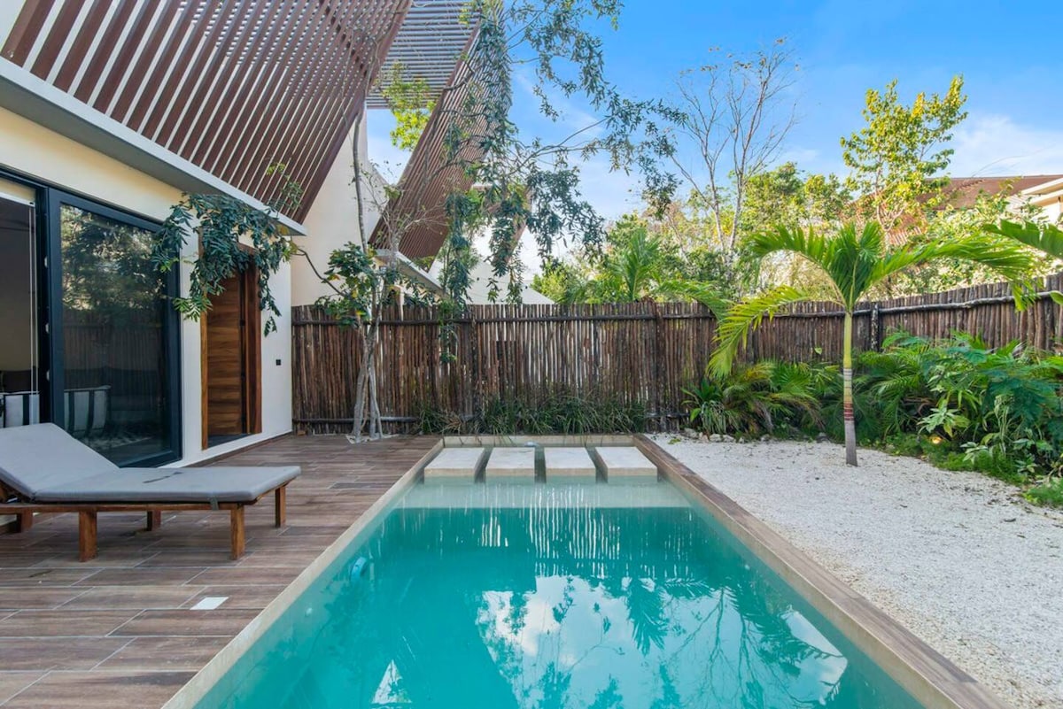 Welcome to your private escape in La Veleta 🌿 Perfectly located just 7 minutes from downtown and 15 minutes from the beach, this home offers the best of both worlds—easy access to town with the peaceful vibe of the jungle. Your comfort and safety are a top priority. The home is professionally cleaned and thoroughly sanitized before every stay. This charming bohemian retreat is nestled among lush Mayan jungle views. The entire property is exclusively yours, featuring a private pool & 4 bikes