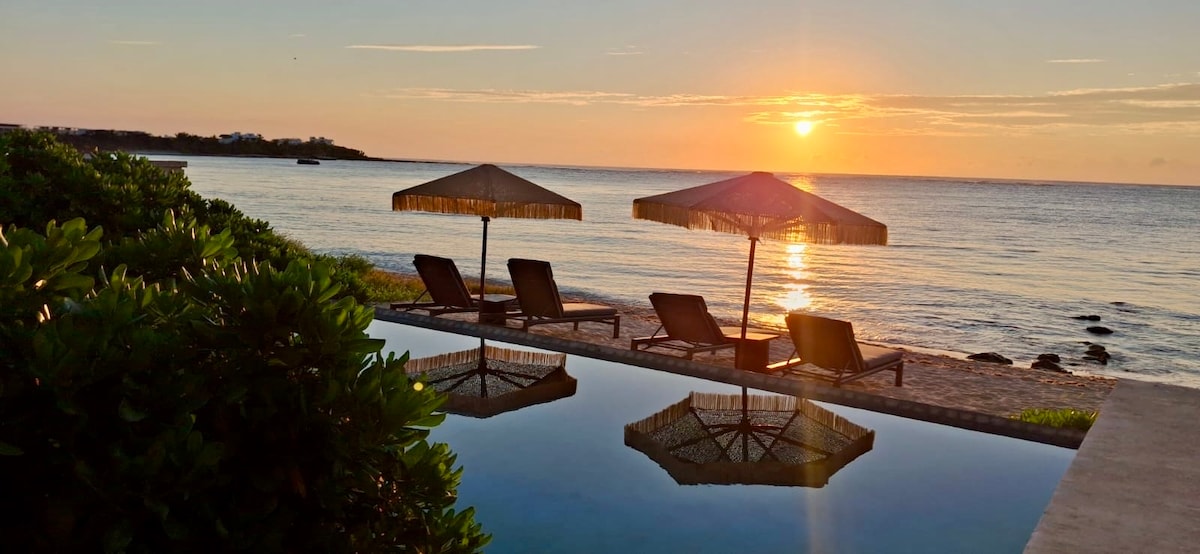Casa Gaia is a dreamy beachfront bungalow where the turquoise Caribbean greets you at your doorstep. Nestled in tropical greenery, this romantic seaside hideaway feels like a private sanctuary. From your bed or living area, watch waves sparkle by day or glow under the moon. Swim in the seaside pool, dip in the sea, and relax on loungers under the palms. Casa Gaia sits very close to the sea - the most romantic escape on Tulum Beach.
