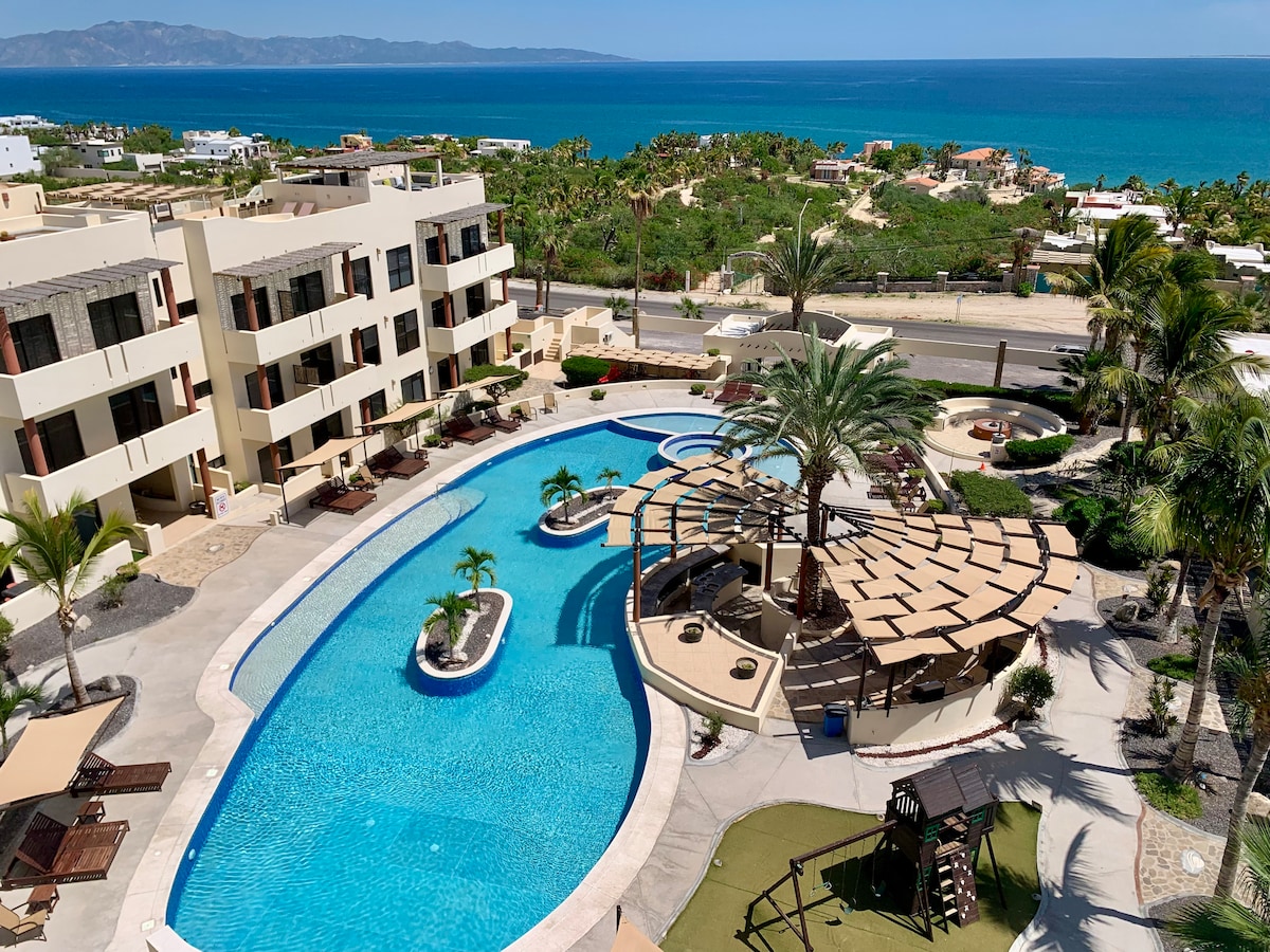 Penthouse with unobstructed views of La Ventana Bay and mountains to the west. Kitchenette with all needed appliances, smart TV, and reliable, fast internet . Deck for amazing sunrises. Club amenities include lounging area, dedicated gas BBQ grills, and fire pits. The pool and hot tub have undergone major repairs, completed in April 2024, and are back in service in perfect condition. World class wind sports, trails for mountain biking and hiking, great, affordable restaurants.