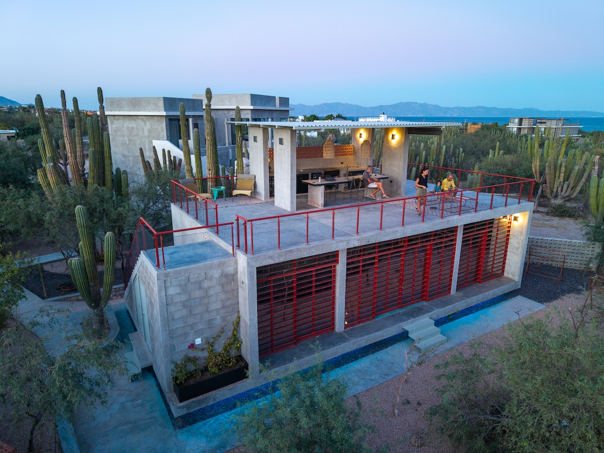 Disfruta de una experiencia con estilo en este alojamiento céntrico.con 2 cocinas interior y exterior con fire pit vistas increíble a los bosques de cactus camina ala playa en 10 mins a baja joes, el marlin ,baja grill restaurants .mejor lugar para hacer bici de montaña ,kite surfing, buceo ,hiking, yoga.