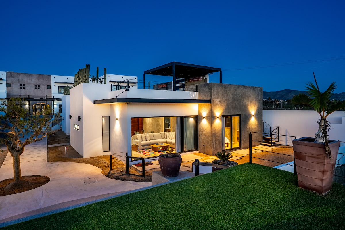Casa Cardones blends minimalist elegance and sustainability, harmonizing perfectly with the desert landscape. Its chukum walls, natural wood accents, and large windows connect the interior with nature, offering privacy without disconnecting from the surroundings. The open spaces, along with the terrace and rooftop, provide unique views and relaxing moments under the stars. Every detail reflects comfort and respect for the environment, creating an experience in tune with the desert.