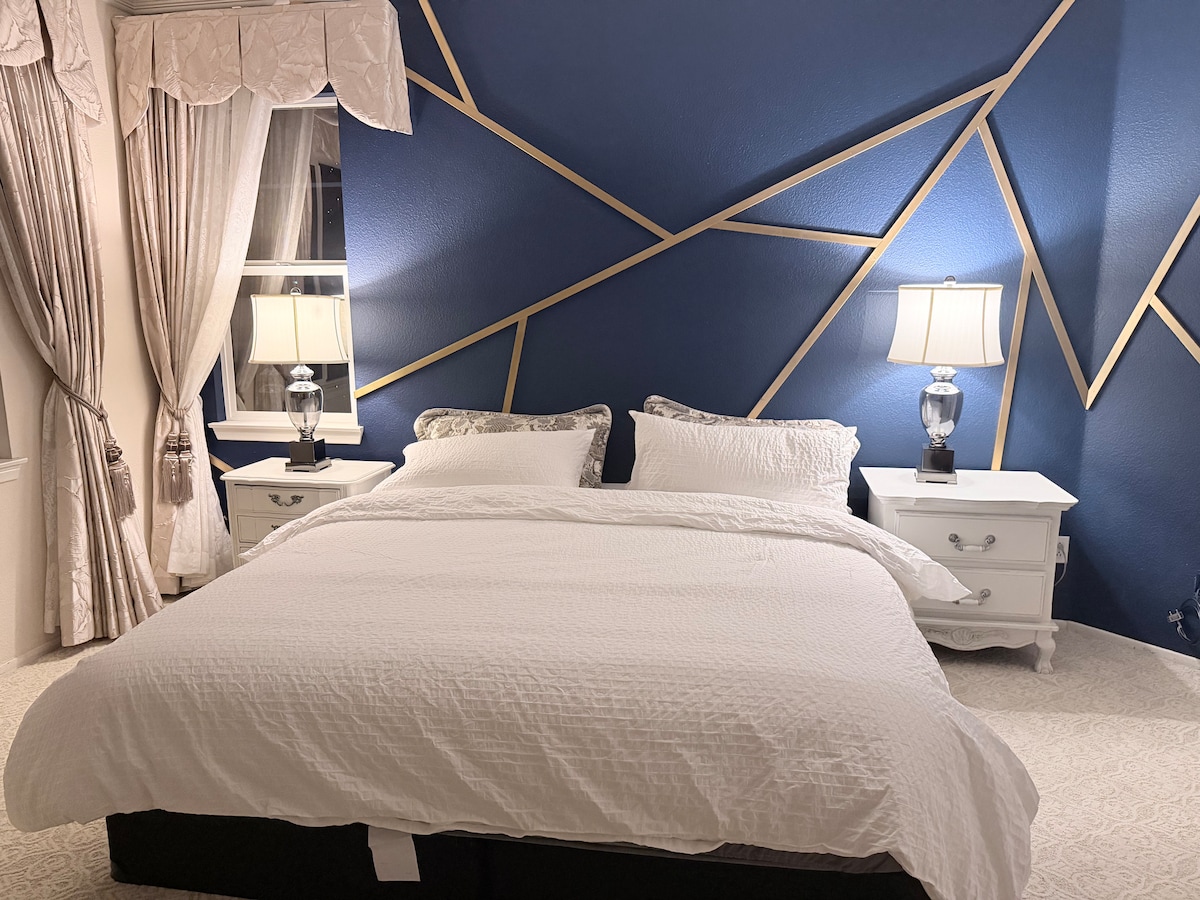 Escape to this peaceful and cozy 3BR modern home nestled in a quiet, safe neighborhood. Ideal for couples or families with up to 7 guests! Relax in the high-ceiling living room with Smart TV or unwind in the Cal King master suite with its own TV. Enjoy fresh coffee from the fully stocked kitchen. Only minutes away from great restaurants and shopping plazas! Each room has split A/C for personalized comfort. 2-car driveway and free street parking. Free coffee, tea, welcome treats included!