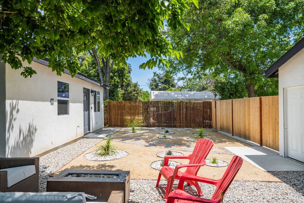 New construction 2 Bed 1 Bath Modern Hidden Gem! This Guesthouse has its own private yard, entrance & driveway. At just under 600sqft, No stone was left un-turned when Designing this space. This open concept Home features a living area with a Sleeper Sofa, 50" Roku TV, 4 chair dining table, A Remote controlled AC & Heat system. Full Kitchen with Microwave, Oven, Fridge & Washer/Dryer. Full Bathroom with Tub & Shower. 2 bedrooms, 1 with a queen bed & the other w 2 twin beds.