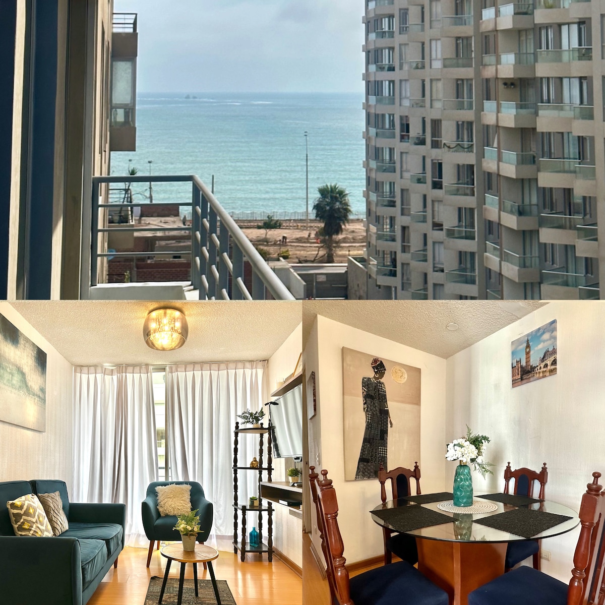Moderno apartamento con vista directa al mar, ubicado en San Miguel, a solo 10 minutos del Aeropuerto Internacional Jorge Chávez y muy cerca del centro de espectáculos Arena 1. Cuenta con 2 dormitorios, 2 baños completos y un balcón privado ideal para disfrutar la brisa marina. Perfecto para conciertos, escapadas románticas, vacaciones o viajes. Con WiFi rápido, Smart, con cuentas de Netflix, Disney y Star+ para una estadía cómoda y placentera. Cochera techada con pago adicional.