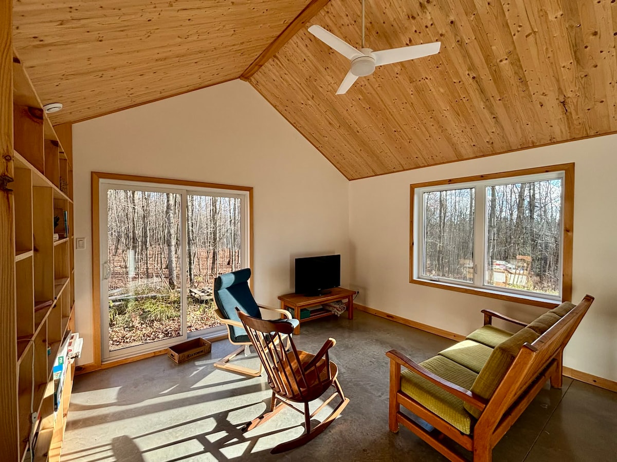 Le Studio est connexe à l'Atelier de Taille Directe mais privé et insonorisé. Éclairé de tout côté, le soleil s'y lève et s'y couche .La vue panoramique sur la campagne est inspirante et le sentier équestre vous permettra de prendre une marche et même de vous rendre au village de Charette à quatre kilomètres. l'endroit est équipé du Wifi haute vitesse et d'un plancher chauffant radiant. Le rang est tranquille avec peu de trafic. Le tarif à l unité est avantageux pour personne seule