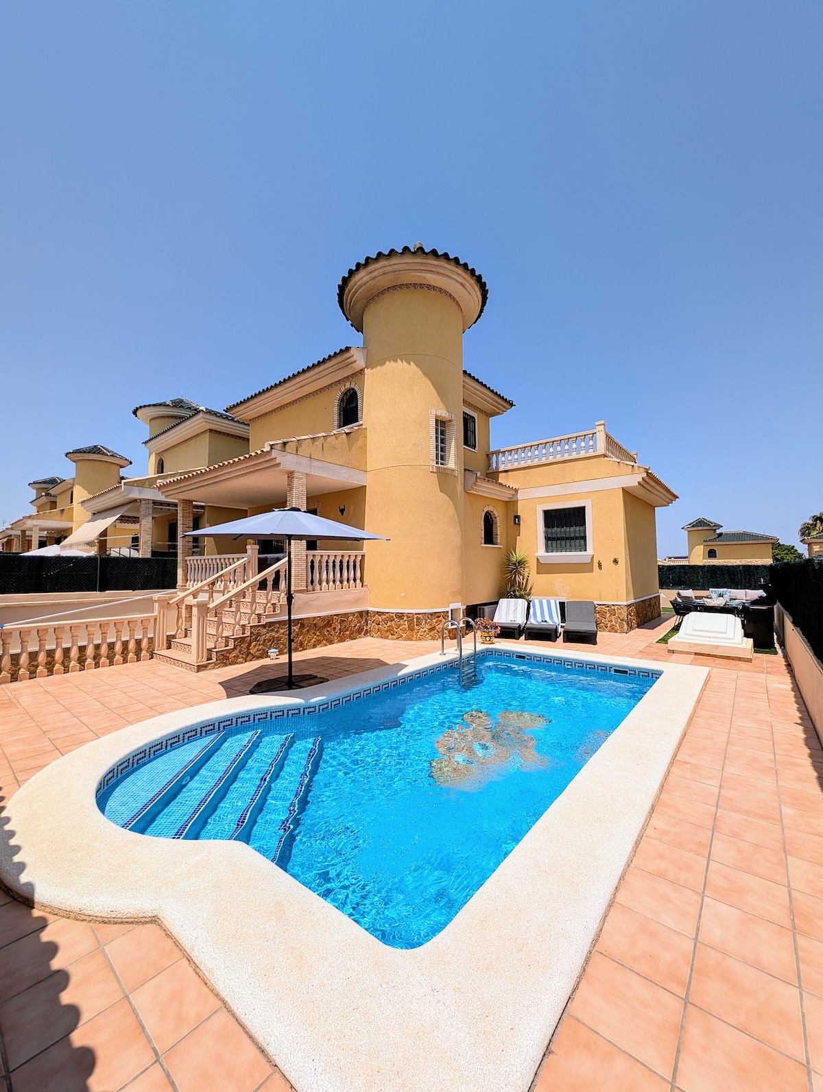Luxe moderne Prive Villa met prive zwembad,airco,vaatwasser en 5 slaapkamers met vloerverwarming en een capaciteit voor 10 mensen. De villa is smaakvol ingericht en staat op een Top locatie in de wijk Los balcones ook wel '' The Beverly Hills van Torrevieja genoemd. Een van de veiligste buurten van Torrevieja met het politiebureau op 2 minuten afstand lopen. Meerdere prachtige stranden en leuke restaurants en bars in de buurt. VERBODEN BINNEN TE ROKEN! In de tuin en op dakterras roken.