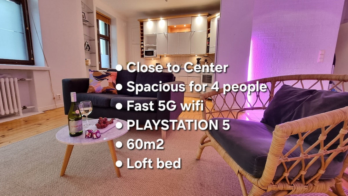 Close to City center and Sea - plenty of space for 4 adults and kids. Various grocery shopping 300m, different restaurants (Chjoko chocolate shop/bar, Kolme Kruunua/Zinnkeller restaurant 200m) Alko next door 50m. 1 Queen size bed 180x200cm, 80cm Single bed, 90cm loft bed + crib. Fast 5G WIFI, new PS5 &Membership+, 55 TV Netflix, Disney+, HBOmax. AC unit for hot weather. Kruununhaka area Close are ☆ Allas Sea pool ☆ Senate's Square 24/7 check-in No need to climb stairs 1st floor Location!