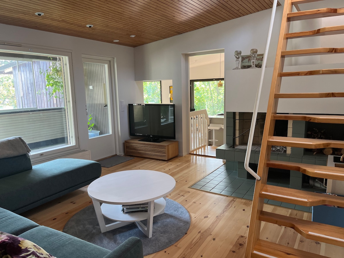 Escape to this spacious 4-bedroom home in peaceful Jollas, just 20 mins from central Helsinki. Surrounded by forest, it sleeps up to 8 and offers a cozy fireplace lounge, fully equipped kitchen, dining area, and office space. Relax in the private sauna and spa, enjoy movie nights in the TV room, or play ping pong on the indoor terrace. With glassed-in and outdoor terraces facing nature, it’s perfect for families, friends, or small events.
