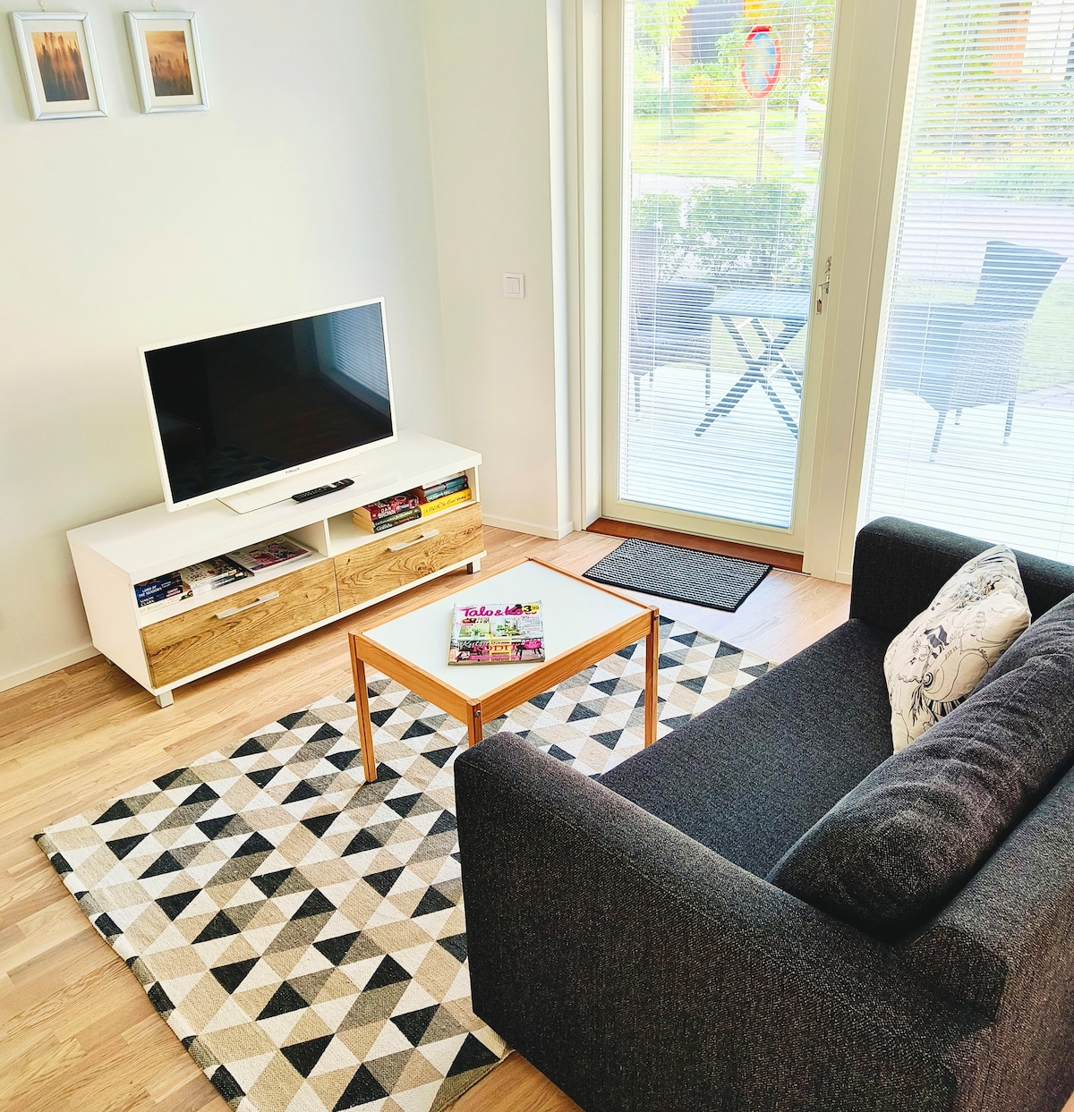Experience the beauty and comfort of Scandinavian living in our 78 sqm apartment in Kalasatama, Helsinki. Own parking space in the underground parking. Features a large glazed balcony, 2 bedrooms (both with workstations), a fully-equipped kitchen by a professional chef, a large living room, and a sauna. Sleeps 4 (+2 on the air mattress in the living room). Located near restaurants, and shops. Quick access to downtown and the airport. Perfect for short or long stays. Welcome to our home!