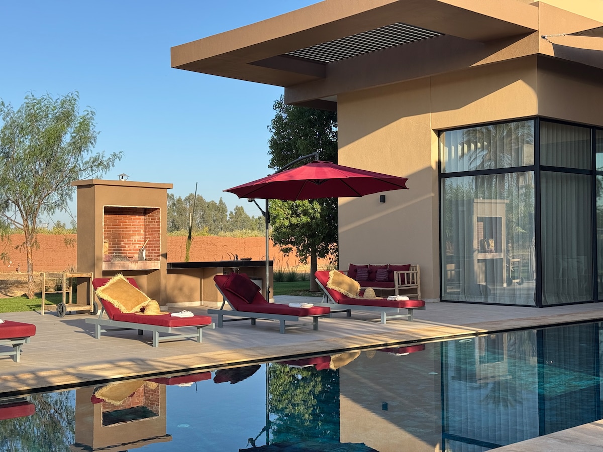 Bienvenue à Villa Badia, un écrin de calme et de design à 35 min de la médina. Sur plus d’1 hectare, profitez de 4 suites élégantes, d’une piscine privée 15x5m, d’une cuisine sur-mesure et de finitions haut de gamme. Un lieu rare pour vivre Marrakech autrement, entre intimité, confort et service hôtelier.