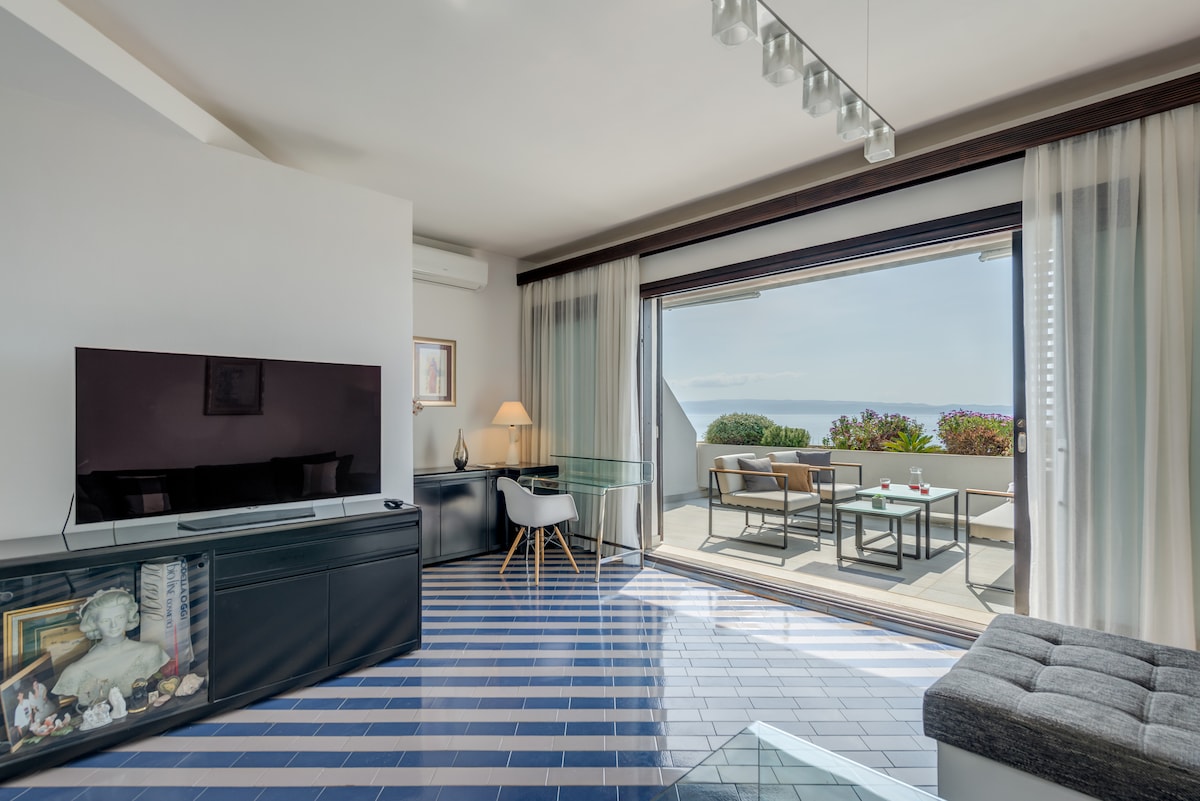 This amazing and stylish seafront apartment with a STUNNING sea view is located in the very center of the beautiful “lungomare”, the Riva promenade, at the seashore and just beneath Marjan Hill, a very popular recreational zone for outdoor activities like biking, walking and jogging. This modern 4star brand new renovated 73m2 apartment is extraordinary positioned for visiting the UNESCO site of Diocletian’s Palace, restaurants, bars, nearby beaches and other popular places in the city.